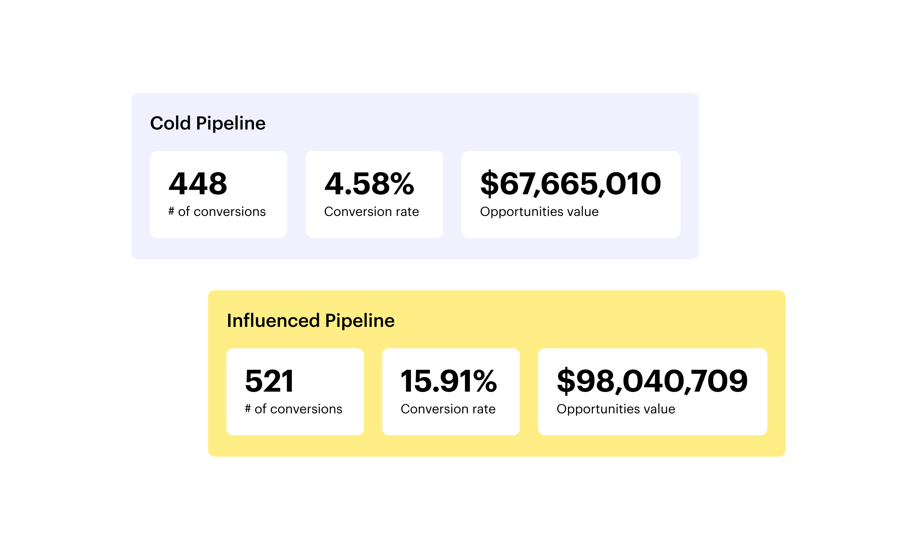 Quantify the additional value marketing created by comparing conversion rates of deals influenced by your programs to those that weren’t.